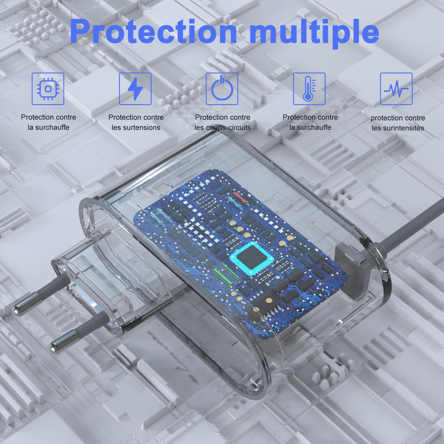 Sécurité: la conception et les matériaux spéciaux assurent une sortie de courant optimale pour votre appareil. Protège contre les courts - circuits, les surtensions, les surintensités, la surchauffe et assure la sécurité de la charge.