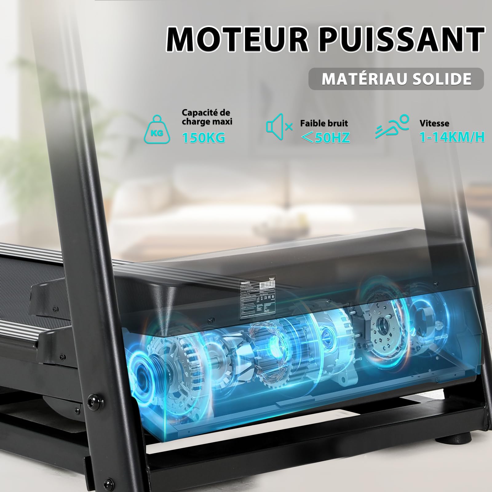Tapis de course motorise inclinable silencieuse, tapis roulant de sport pliable est équipé d'un moteur de 650W de haute précision et à faible bruit et d'une ceinture de course multicouche antidérapante, garantissent durabilité et silence pendant l'utilisation du tapis de course. Permet une course de haute qualité/haute intensité et en même temps offrez un environnement d'exercice calme/confortable sans perturber le repos/le travail des autres, vous permettant de courir facilement et sans fardeau.