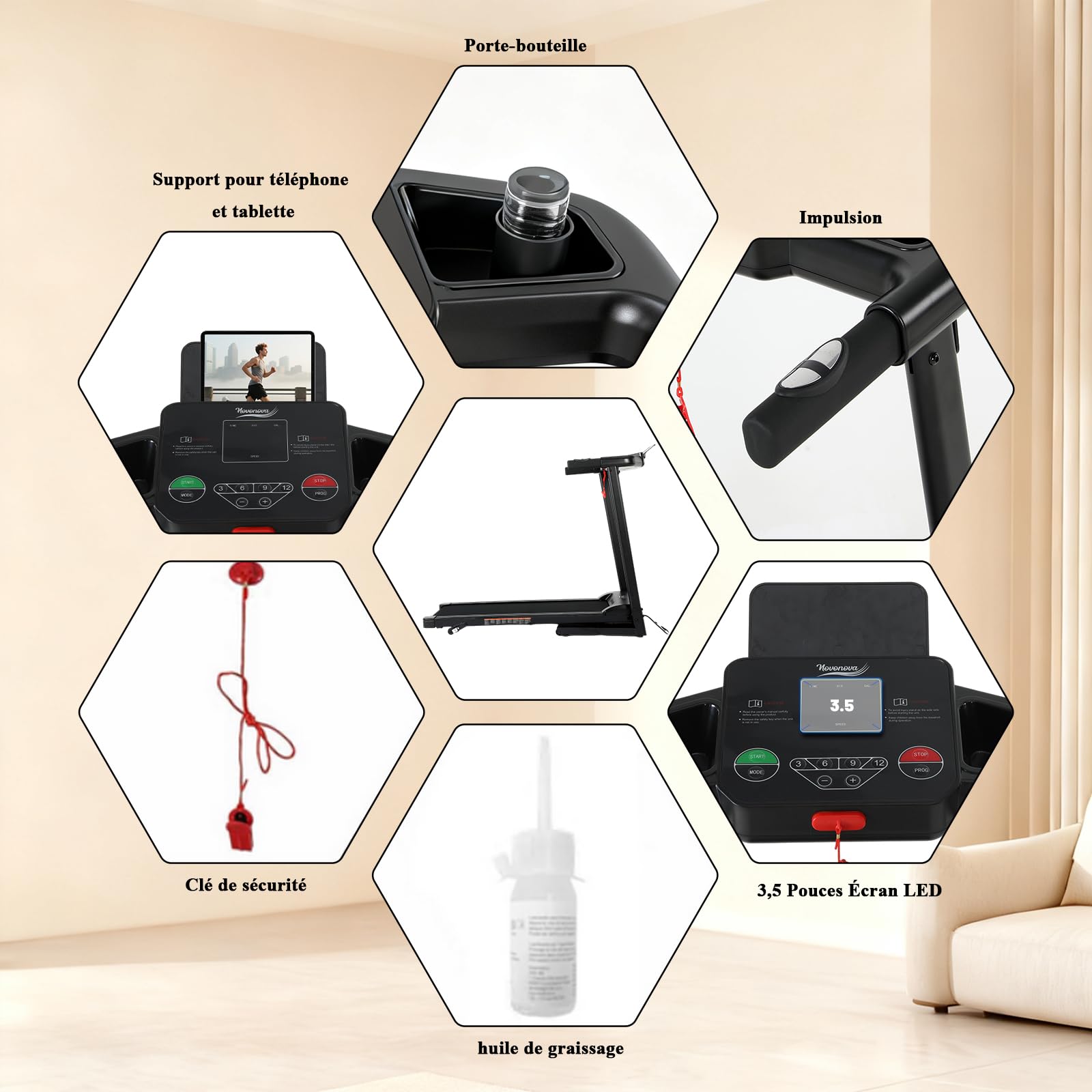 ➡️🏃♂️➡️Dimension du tapis de course inclinable 1400*620*1125mm; taille pliable du tapis course 500*620*1280mm. Support pour téléphone portable/tablette vous permet de profiter d'activités de divertissement tout en faisant de l'exercice, rendant votre exercice plus intéressant. Porte-gobelet à eau vous permet de vous réhydrater à tout moment. Veuillez noter que le produit dépend du produit réel reçu. Novonova vous offre un service après-vente professionnel. S’il y a question, n'hésitez pas à nous contacter.