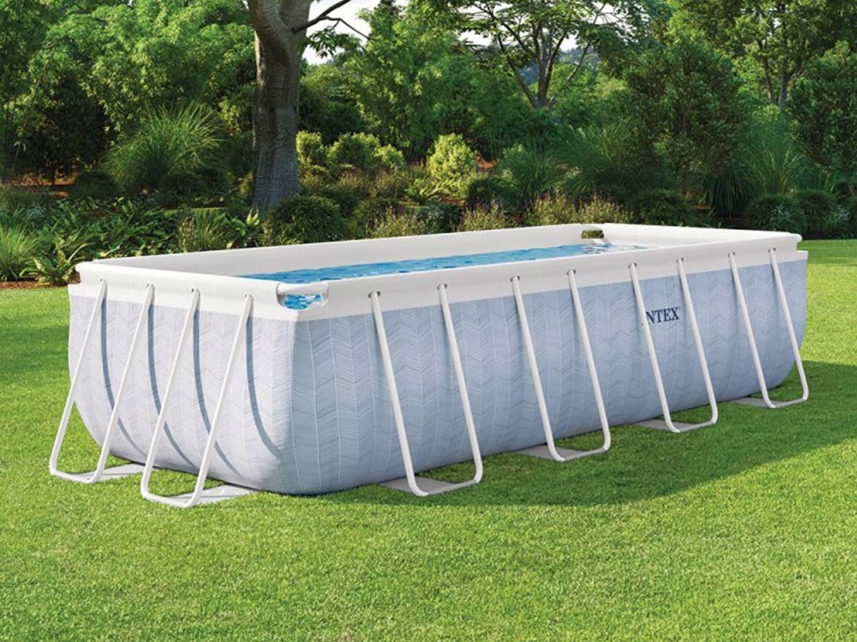 La piscine tubulaire Chevron rectangulaire Intex est empreint de modernité avec son design tendance et plein de fraicheur.