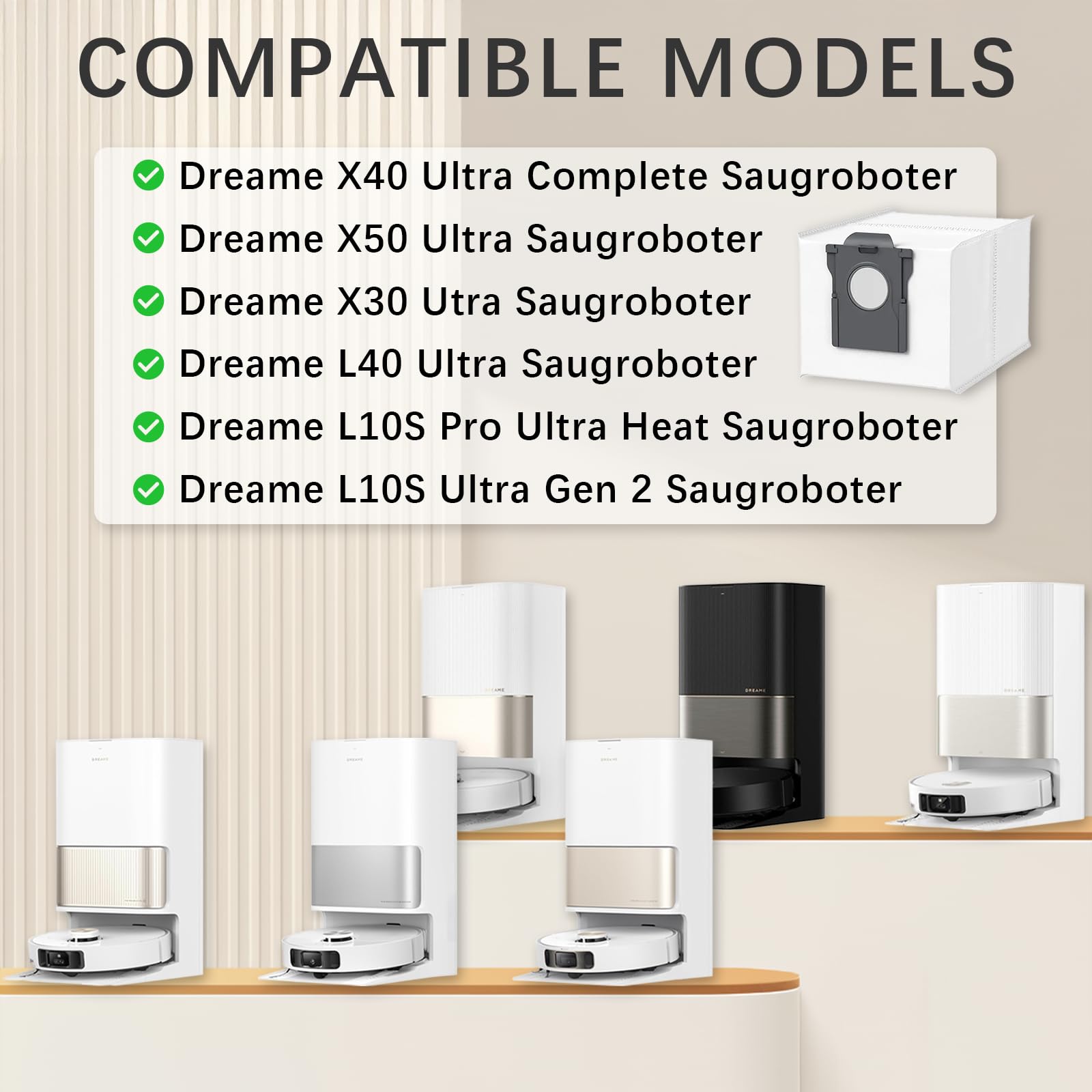 Parfaitement compatible avec Dreame : Le sac à poussière est compatible avec les robots aspirateurs Dreame X30/X30PRO/X30Ultra/L10s Pro Ultra/L40/X40/X40 Ultra/S10ProUltra/S30/s10puls/X50/X20. Veuillez confirmer le modèle de votre appareil avant de passer commande.