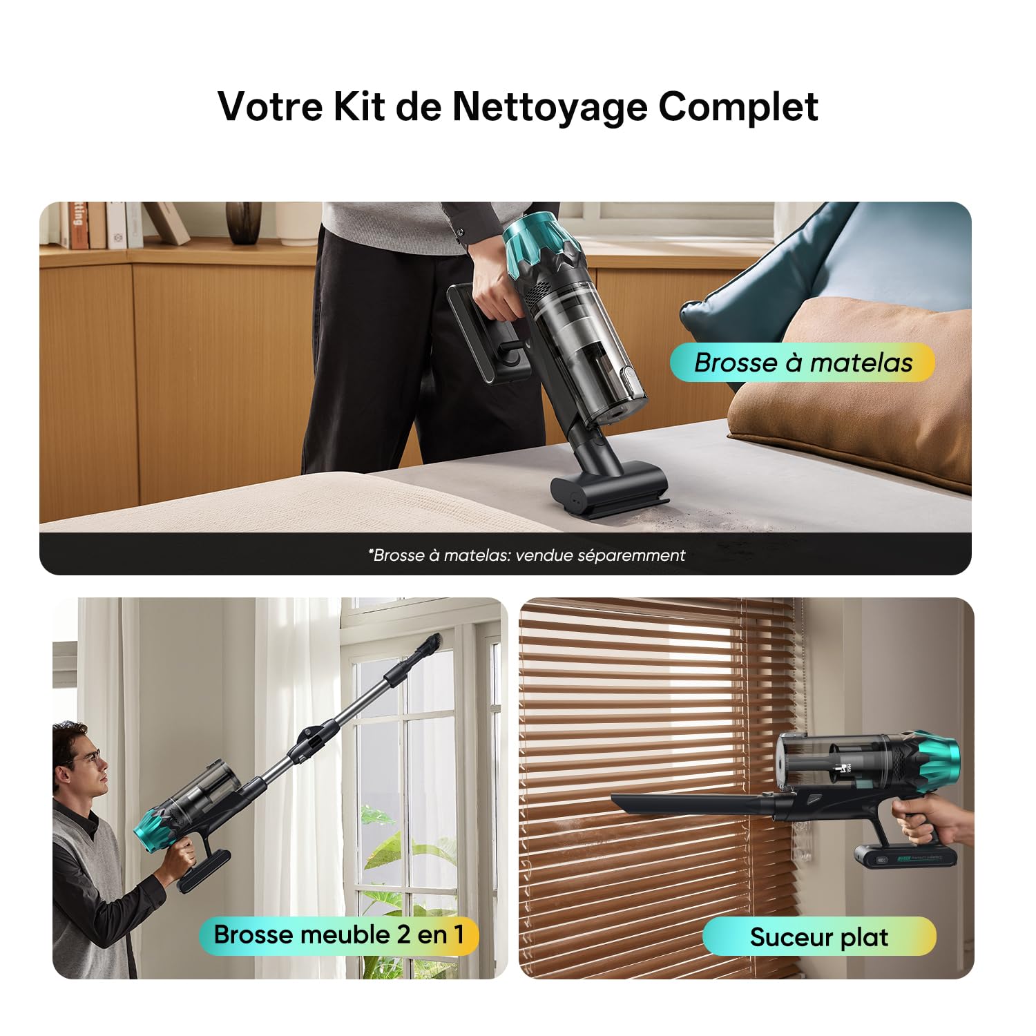 Aspiration durable, respiration libre, rangement sans effort: Cet aspirateur sans fil puissance et praticitĂ©.Sa technologie Ă  7 cyclones sĂ©pare efficacement la poussiĂšre de l’air, ce qui limite l’encrassement du filtre et garantit une aspiration constante et durable.Son systĂšme de filtration haute prĂ©cision (99,9 %) retient la poussiĂšre, les poils d’animaux et les allergĂšnes pour un air plus sain. Enfin, grĂące Ă  son design autoportant, il peut ĂȘtre posĂ© n’importe oĂč, sans support mural, pour un rangement simple et peu encombrant.