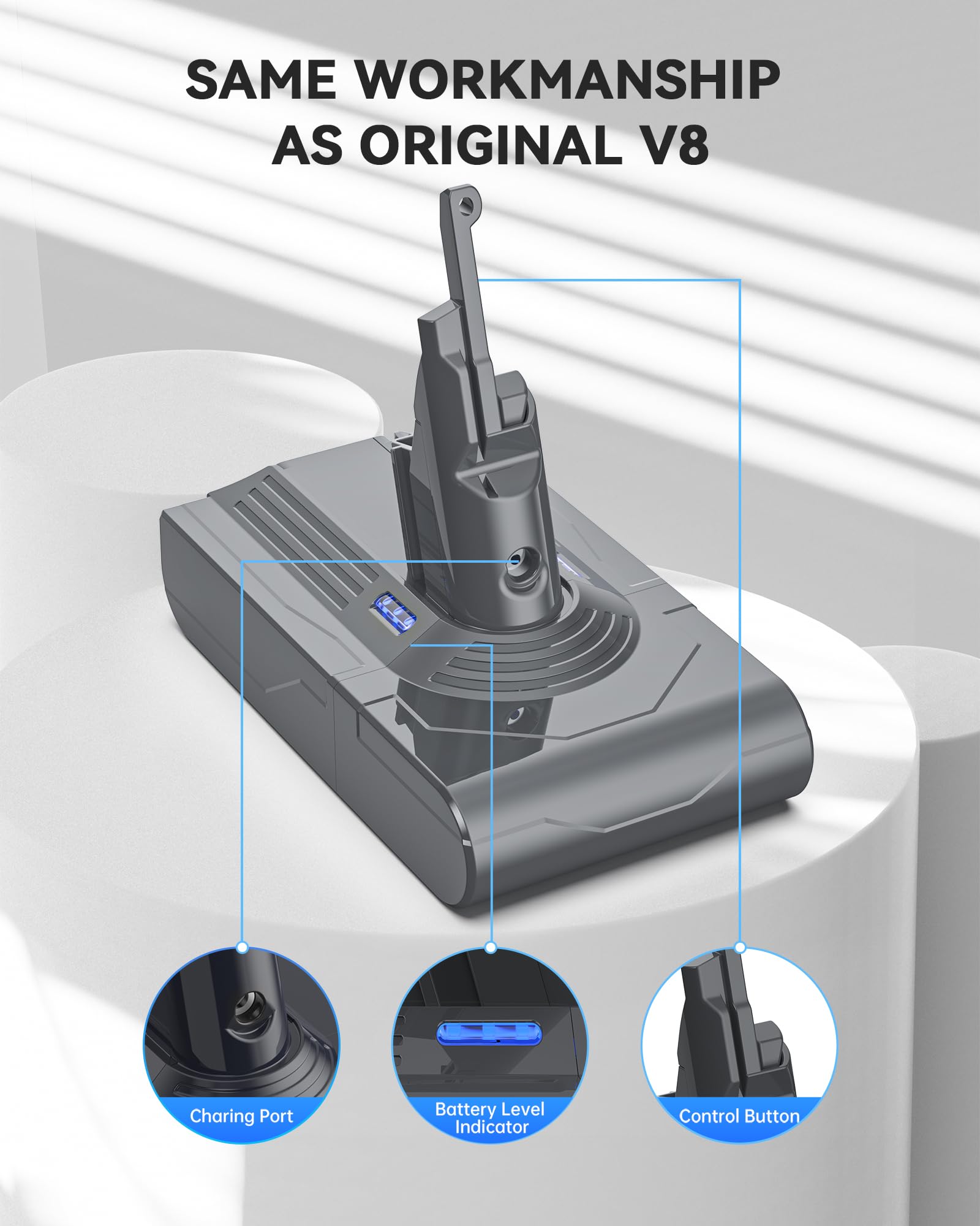 【Protections Multiples】Certification de sécurité de CE FCC ROSH. Fabriqué avec des cellules de haute qualité, morpilot batterie intègre de multiples protections contre surtension, surintensité, court-circuit et surchauffe interne, afin que vous puissiez garantir une utilisation plus sûre avec votre Dyson. Pas d'effet mémoire, peut être chargé ou déchargé au besoin sans perte de capacité.