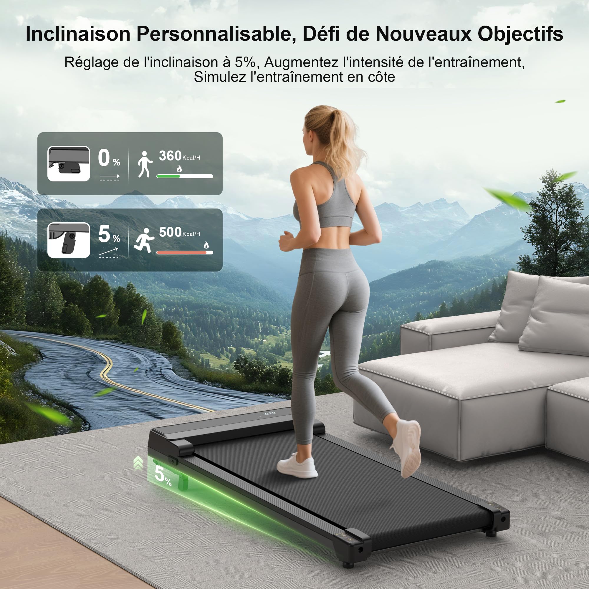 Tapis de Marche Walking Pad - Pente 5% Inclinable Course Bureau Roulant Maison Portable Motorise Tr…