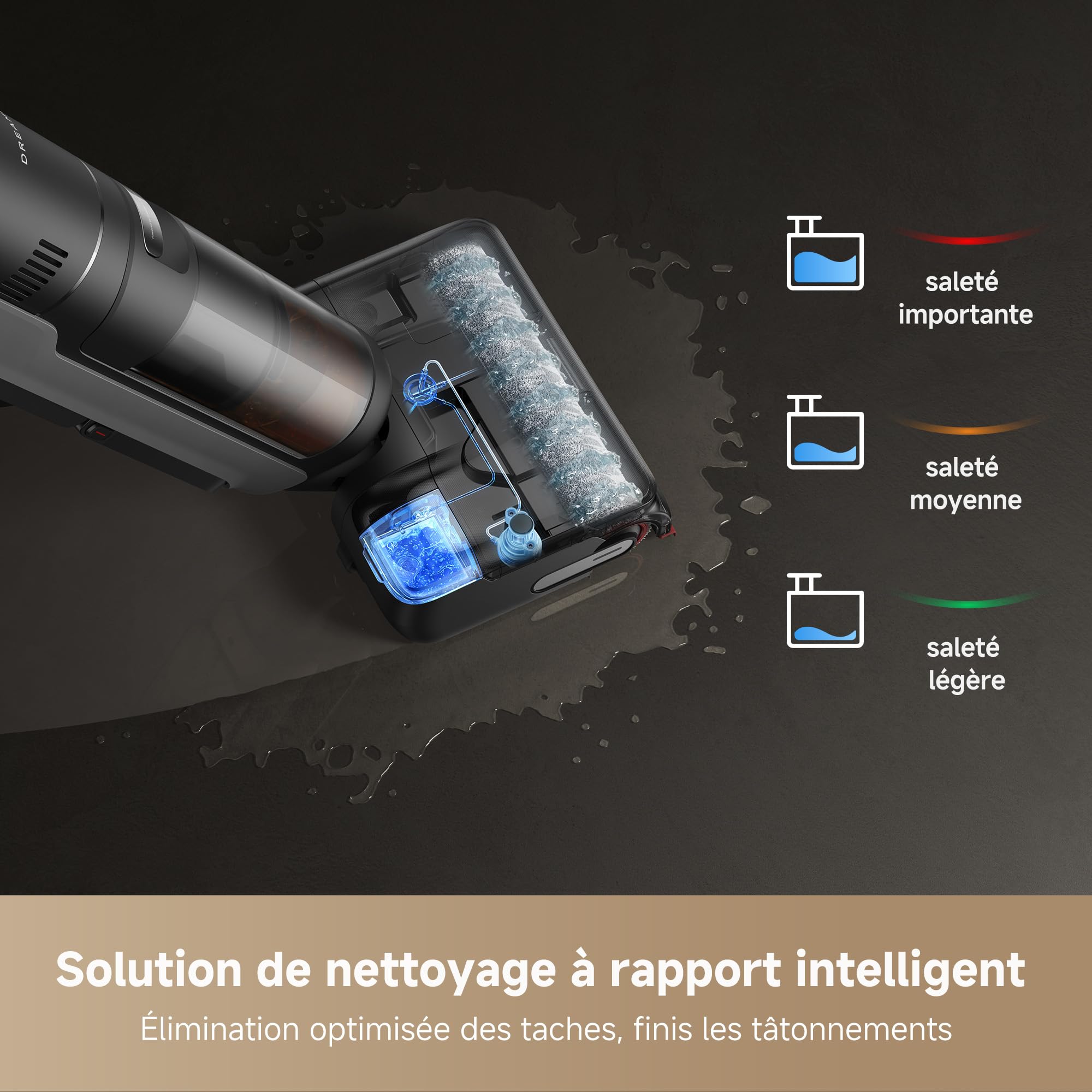 [Solution de nettoyage à rapport intelligent et application DreameHome] La détection intelligente de la saleté indique instantanément le niveau de saleté grâce à un écran LED à code couleur pour des mises à jour du nettoyage en temps réel; Grâce aux ajustements automatiques de la solution de 1:200 à 1:30, le H15 Mix offre la solution adaptée à tous les types de saleté; Améliorez votre personnalisation avec l'application DreameHome, qui regroupe les paramètres, les rappels et les mises à niveau dans un seul et même endroit